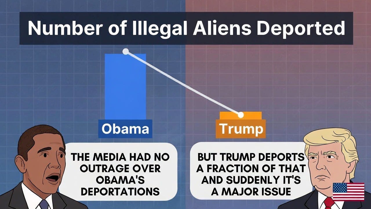 Yet during those years, media outrage was restrained. No relentless front-page series on the human cost, no celebrity-led campaigns, no framing as a humanitarian crisis on the scale seen today. Obama received credit for “smart” priorities (focusing on criminals), while the volume and methods faded from view. Fast-forward to Trump’s current push—claiming hundreds of thousands removed in his first year back, including self-deportations and the press treats it as a shocking escalation, ignoring that Obama set higher benchmarks without similar fanfare.